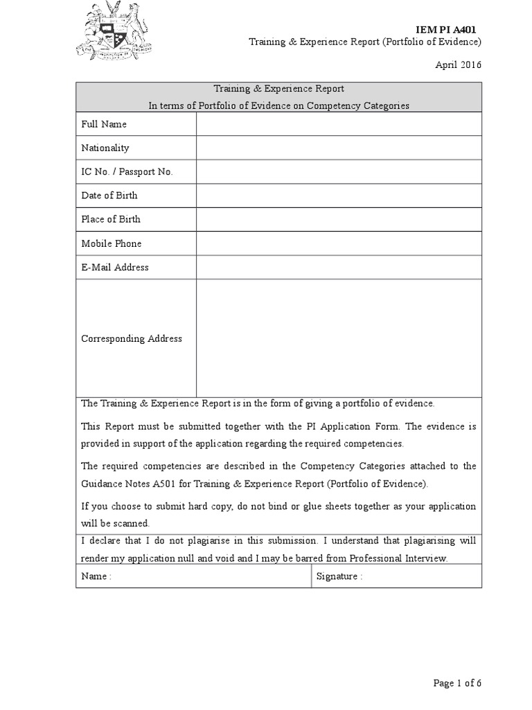 Iem Pi A401 Portfolio Of Evidence On Competency Pdf Competence Human Resources Engineering
