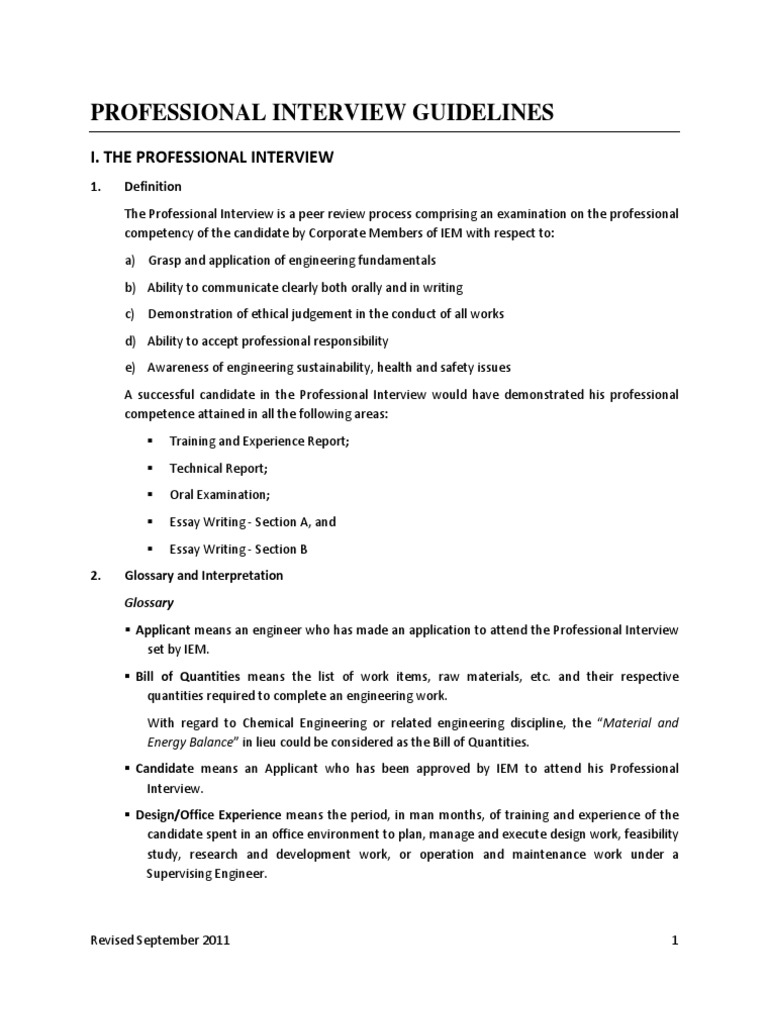 Iem Professional Interview Guidelines New Revision Starting 1 Sep 2012 Pdf Engineer Engineering