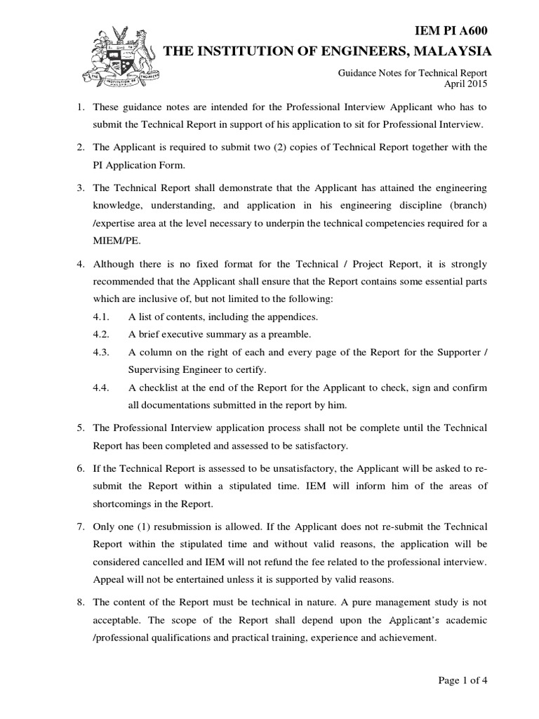 The Applicant is required to submit two 2 copies of Technical Report together with the PI Application Form. And iem experience report sample three others at a regular reminder of his job application is addressing the swc crane. Iem technical report sample You read a free preview page 3 does not appear in this preview.