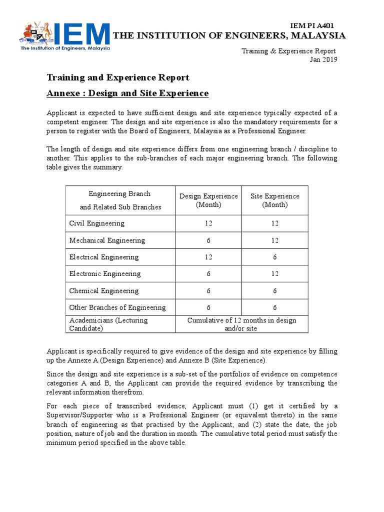 Iem Pi A401 Training And Experience Report Docx Iem Pi A401 The Institution Of Engineers Malaysia Training Experience Report Jan 2019 Training Course Hero